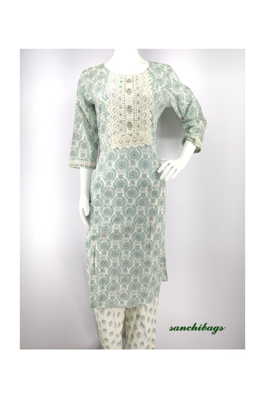 Sold outWhite and Green Salwar Set